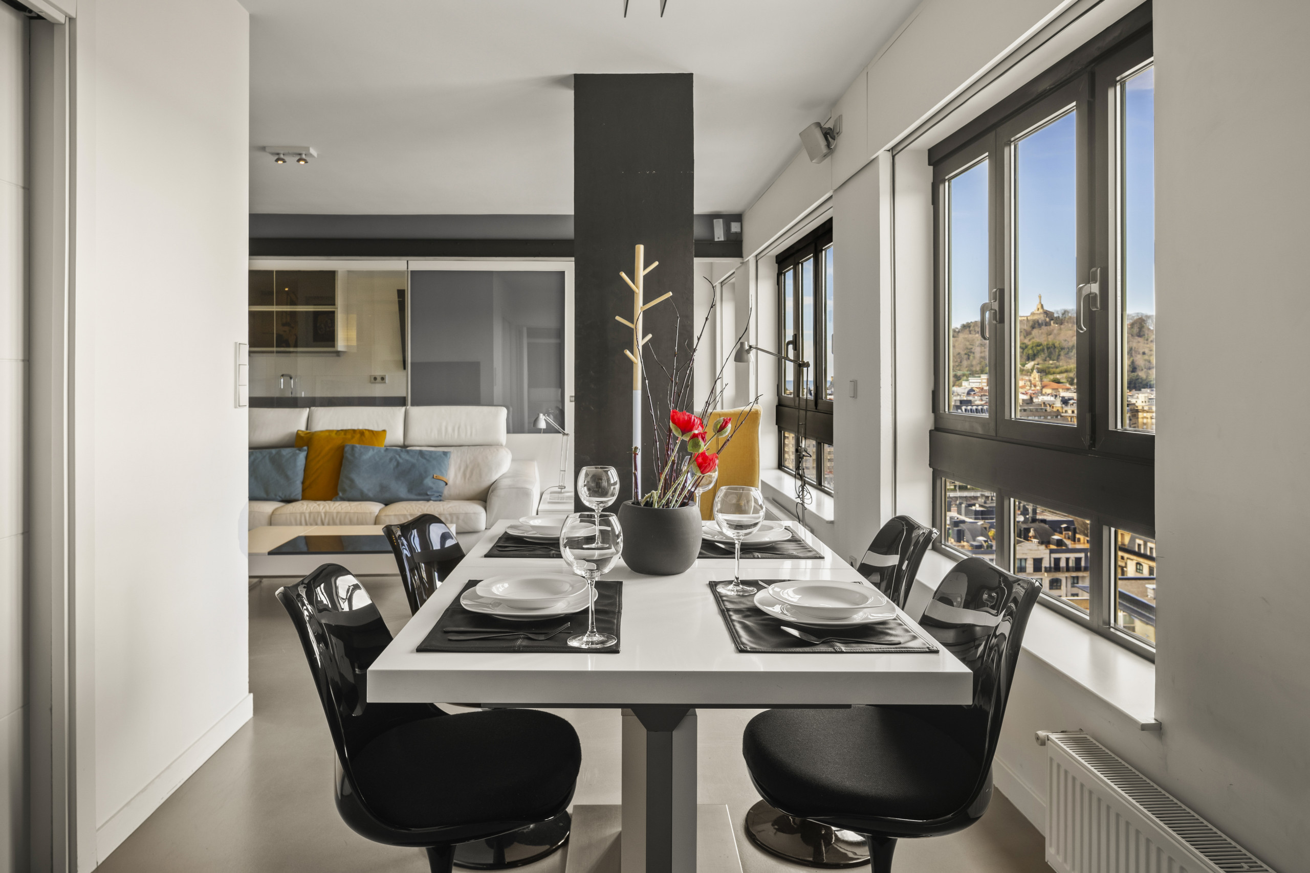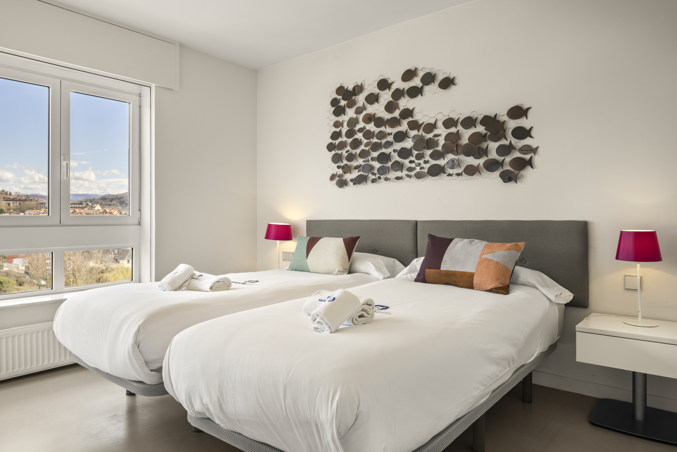 Excelente apartamento ubicado a unos pocos metros de la Parte Vieja de San Sebastian. Cuenta con 2 habitaciones, ambas con cama de matrimonio de 150 cms de anchura, 1 baño con plato de ducha, cocina totalmente equipada y un amplio salón comedor con vistas a la Plaza Zuloaga.
