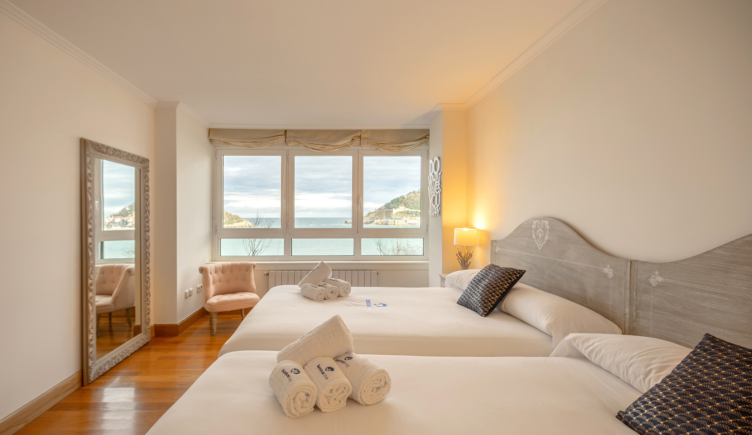 Mirakontxa es la mejor ubicación en la bahía. Está al lado del Palacio de Miramar, donde María Cristina de Habsburgo decidió veranear. Decir que es un palco real no es metafórico, sino literal. Tuve un problema para cerrar una ventana, y no porque estuviese mal, si no por torpeza mía. Llamé y en 15 minutos estaban allí solucionándolo con mucha amabilidad.