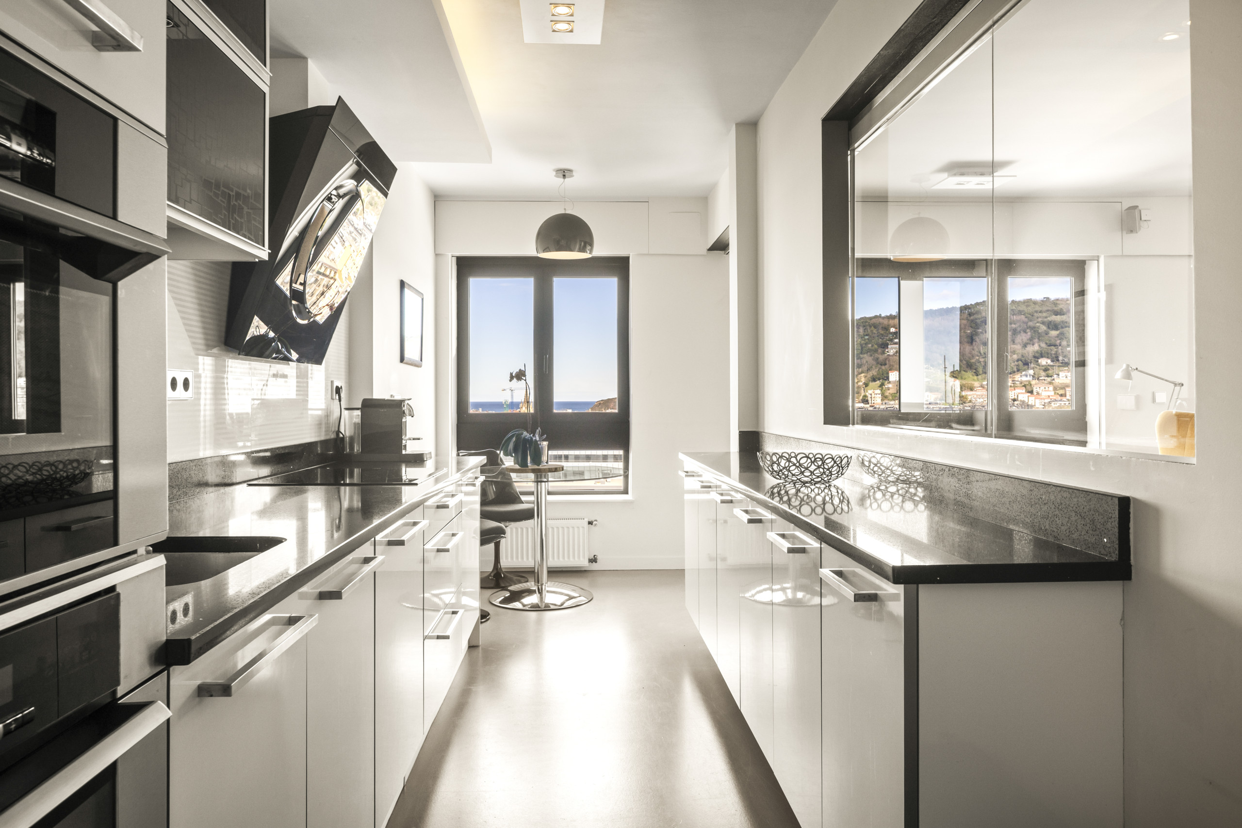 In the hotplate of glass ceramics independent kitchen, refrigerator, microwave, oven, freezer, dishwasher, dishes/cutlery, kitchen utensils, coffee machine, toaster, kettle and juicer are provided.